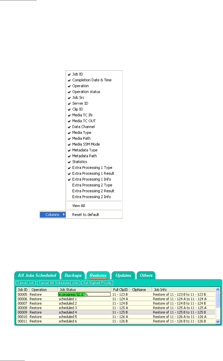 The Scheduled Jobs status display allows the operator to cancel one or all of the jobs in
