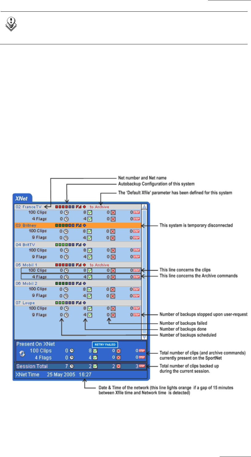 displayed as described for the Backup mode. Refer to section 3.6.1 ‘XNet List’ on page