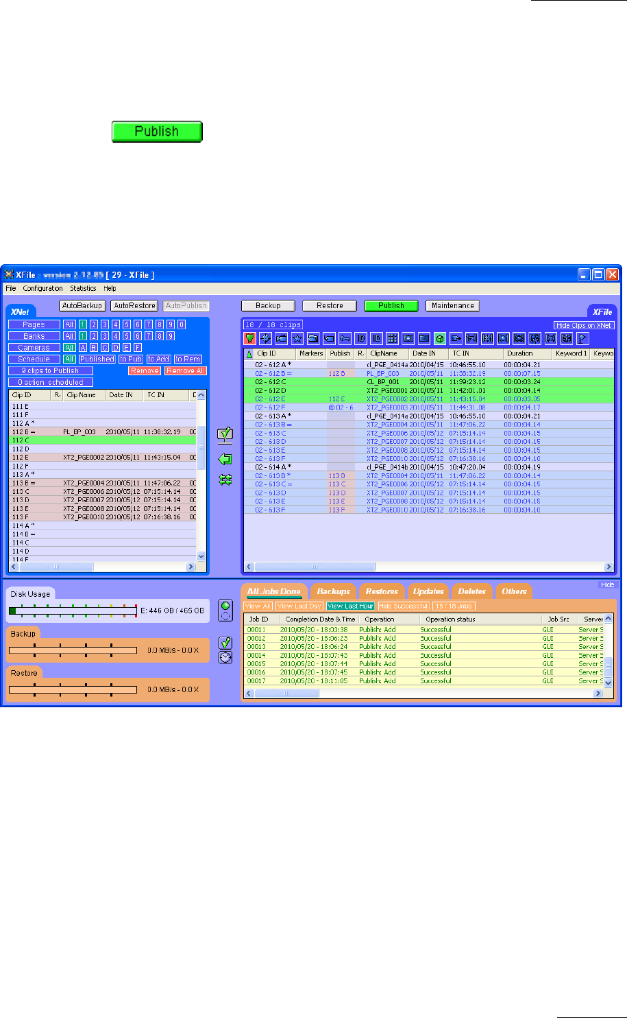 The Publish mode gives a direct access to the clips saved to XFile disks. A batch of clips