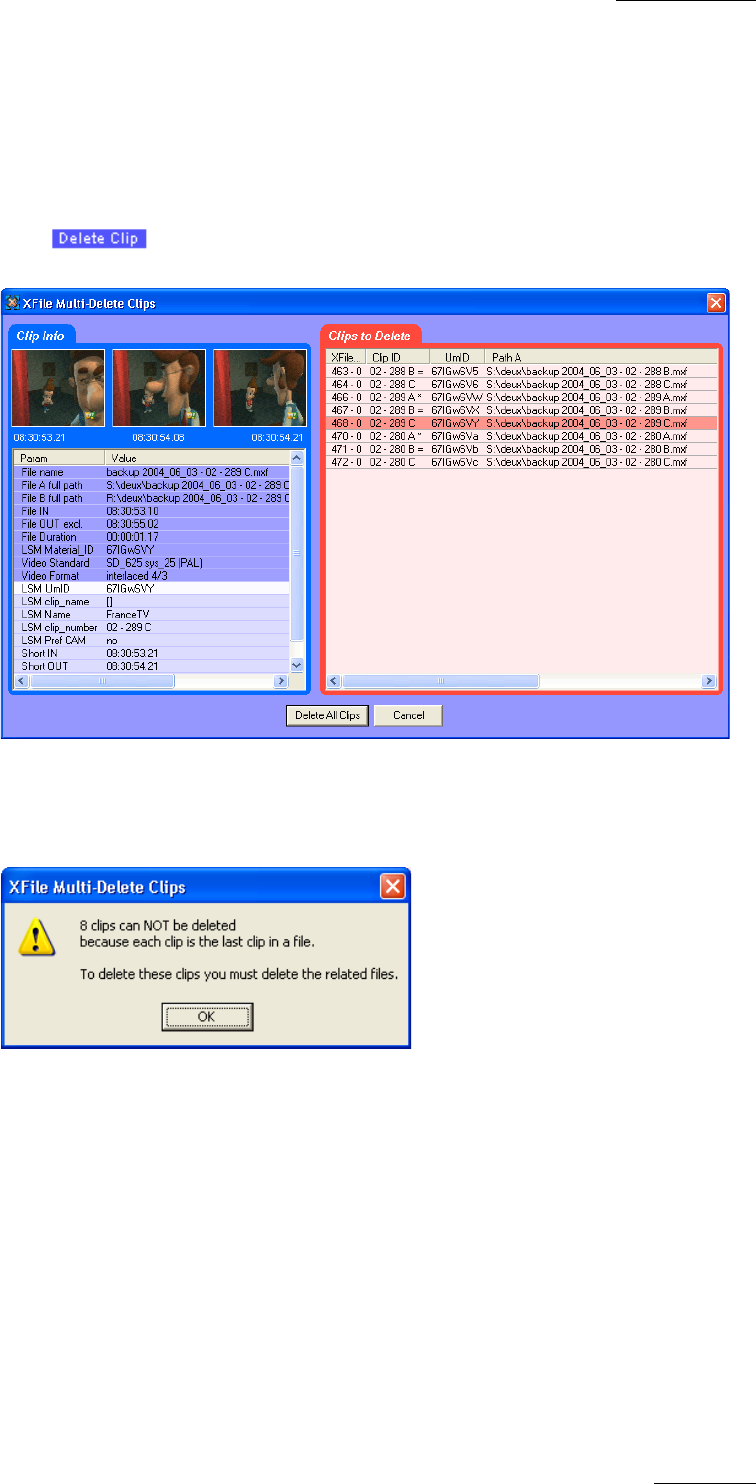 Click to open XFile Multi-Delete Clips window. This window allows the