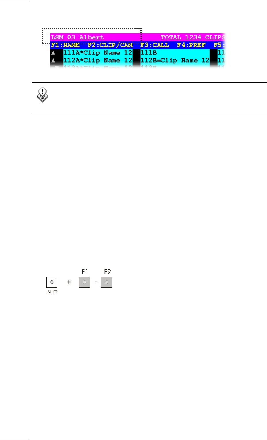 5. Choose the clip required (F1 - F10).