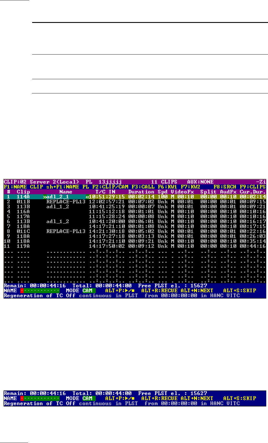 displays information on the clips included in the current or loaded playlist. Several