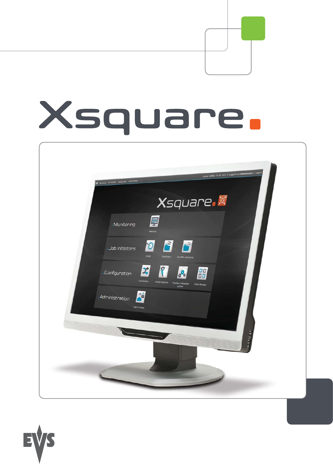 Xsquare – Version 1.0 – User Manual EVS Broadcast Equipment – June 2012 1. Issue 1.0.C Xsquare Introduction The goal of the Xsquare solution is to act as an orchestrator receiving job requests and dispatching them to the best engine (loadbalancing, JOB API, etc), which means an engine available and able to manage the requested job (transcoding, rewrap, etc). The engines will first be limited to XTAccess.