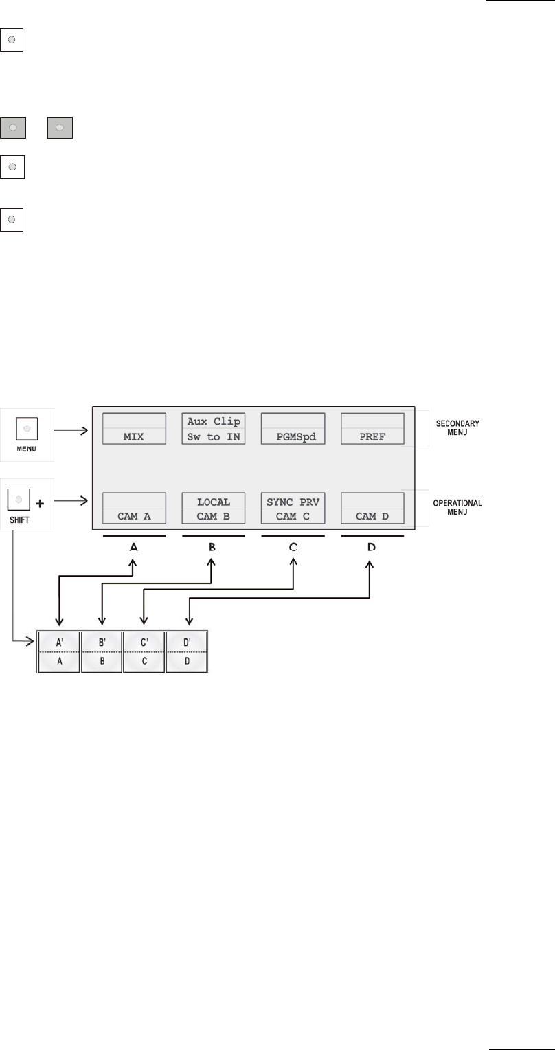 • To access the secondary functions in the operational menu (A’ to D’), press the