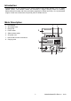 Introduction Congratulations on your purchase of the Extech Milliohm Meter Model 380460 (110V) or Model 380462 (220V). The milliohm meters are enclosed in rugged carrying cases for durability. Measurements are made with Kelvin test leads (supplied) for optimal accuracy in five (5) selectable ranges. Careful use of this meter will provide years of reliable service. Meter Description 1. LCD Display 7 2. Zero adjust knob 3. Range Dial 6 8 4. Power switch 5. 200m select switch 6. AC power cord 7.