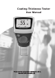Coating Thickness Tester User Manual 1. General Information The coating thickness gauges work either on the magnetic induction principle or on the eddy current principle, depending on the type of probe used. You can select the type of probe via MENU system, or it will work automatically. Features • Measured Coatings: Non-magnetic coatings (e.g. paint, zinc)on steel; • Insulating coatings(e.g.