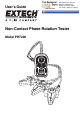 Introduction Congratulations on your purchase of this Extech Meter. The PRT200 is used to quickly and accurately determine three phase sequence for motor installation and repair. The non-contact voltage detecting technique permits easy connection to insulated conductors, avoiding uncertain and difficult connections to bare high voltage wires. This meter is shipped fully tested and calibrated and, with proper use, will provide years of reliable service.