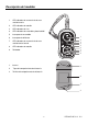 Descripción del medidor 1. LED indicador de secuencia de fase en sentido horario 2. LED indicador de rotación 3. LED indicador de vivo 4. LED indicador de encendido y batería débil 5. Interruptor de encendido 6. Interruptor de brillantez 7. LED indicador de secuencia de fase en sentido contra horario 8. LED indicador de rotación 9. Zumbador 1 7 1. Imanes 2. Tapa del compartimiento de la batería 3.