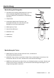 Durchführen von Messungen Kontaktlose (Foto‐) Drehzahlmessungen 1. Bereiten Sie die kontaktlose Messung, wie im Abschnitt „Messvorbereitungen“ beschrieben, vor. 2. Benutzen Sie die MODE‐Taste (durch kurzes Drücken), um RPM (Umdrehungen pro Minute) oder HZ (Hertz: Umdrehungen pro Sekunde) als Messeinheit auszuwählen. 3. Drücken und halten Sie die MEASURE‐Taste, um eine Messung zu beginnen. Halten Sie die MEASURE‐Taste über den Messvorgang gedrückt und lassen Sie diese nach Abschluss der Messung los. 4.