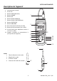 EXTECH INSTRUMENTS Description de l'appareil 1. 2. 3. 4. 5. 6. 7. 8. 9. 10. 11. 12. Connexion de la sonde Écran LCD Bouton HOLD (Maintien) Bouton POWER Bouton SET Bouton fléché RANGE/Up Bouton fléché FUNCTION/Down Bouton ENTER/LOG Bouton MAX/MIN Borne de sortie RS‐232 (Sur le côté) Bouton de réinitialisation (Sur le côté) Prise d’entrée pour adaptateur secteur 9 V DC (Sur le côté) 13. Support inclinable et compartiment à piles (Au dos de l'appareil) 1 2 3 9 4 5 6 7 8 10 11 12 13 1 Sonde 1. 2. 3. 4.