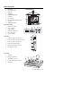 Meter Description 1. Microphone 2. Over Limit Display 3. Bargraph 4. dB display 5. OFF/ON/AUTO switch 6. Alert LEDs 7. Clock display 8. Max level display with time stamp 9. Set limit 10. MAX RESET button Rear Control Panel 1. Range select switch 2. Time set buttons 3. Limit set buttons 4. Calibration adjustment 5. A/C select button 6. F/S select button 1 30-80 2 4 5 6 3 80-130 LIMIT 60-110 Side Panel 1. LED color switch – Green position 2.