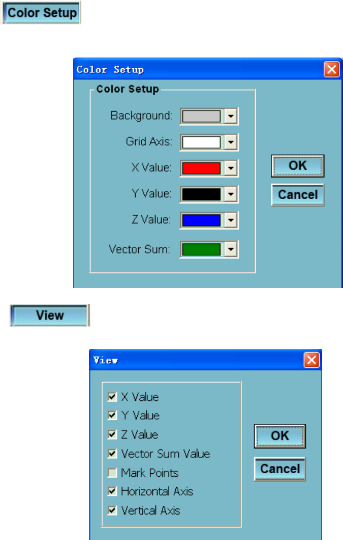 Hintergrund, Rasterlinien, XYZ-Werte und die Vektorsumme einzustellen.