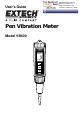Introduction Congratulations on your purchase of this Extech Meter. The VB400 is designed to provide easy and accurate velocity and acceleration measurements on industrial machinery. This meter is shipped fully tested and calibrated and, with proper use, will provide years of reliable service. Features • Applications for industrial vibration monitoring : • All in one pen type digital vibration meter. • Acceleration, Velocity measurement, RMS measurement value.