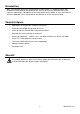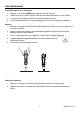 Description du mètre 1. Ecran 2. Bouton Power 3. Bouton Hold 4. Bouton Function 5. Couvercle du compartiment à piles/Compartiment 3 à piles 6. Capteur de vibrations 7. Tête de détection 8. Socle magnétique 5 1 2 4 6 8 7 Icônes d’affichage HOLD HOLD (Maintien) est activé ACC Accélération avec les unités : m/s2, pieds/s2, g VEL Vitesse avec les unîtes : mm/s, cm/s, pouces/s Niveau de charge faible 3 VB400-EU-FR-V1.