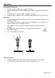 Operación Preparación para medición 1. Presione el botón POWER para encender el medidor. 2. Verifique que la pantalla esté encendida y que no esté encendido el icono de batería débil. 3. Si aparece el icono de batería débil, reemplace las baterías. 4. Instale la cabeza sensible o la base magnética atornillándola al sensor de vibración. Mediciones 1. Presione el botón MODE para cambiar y fijar la función (velocidad o aceleración) y las unidades deseadas. 2.