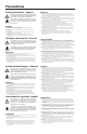 Precautions Safety Instructions • English This symbol is intended to alert the user of important operating and maintenance (servicing) instructions in the literature provided with the equipment. This symbol is intended to alert the user of the presence of uninsulated dangerous voltage within the product’s enclosure that may present a risk of electric shock. Caution Read Instructions • Read and understand all safety and operating instructions before using the equipment.