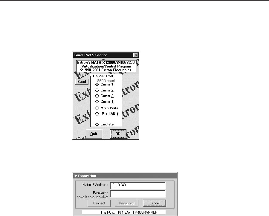 a. Examine the Matrix IP Address field in the IP Connection window. The