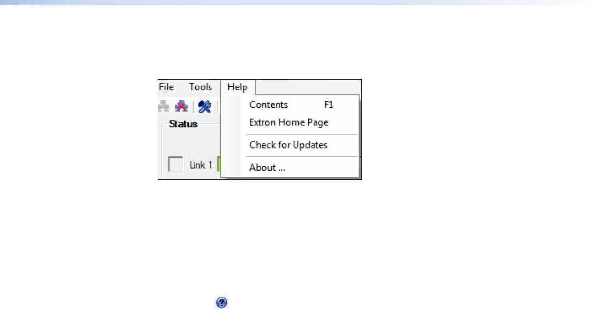 From the Help menu, select Extron Home Page. This opens a new Internet browser