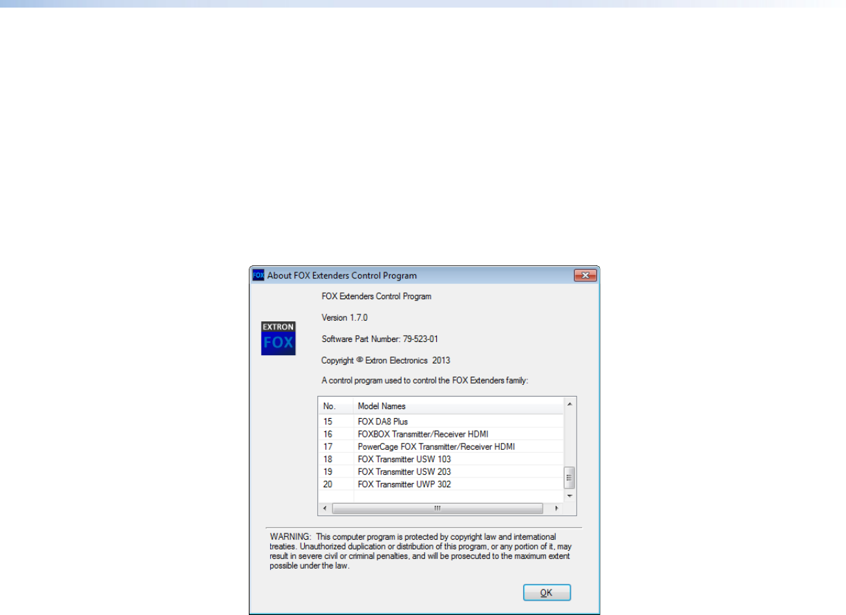 Figure 21. About FOX Extenders Control Program Dialog Box