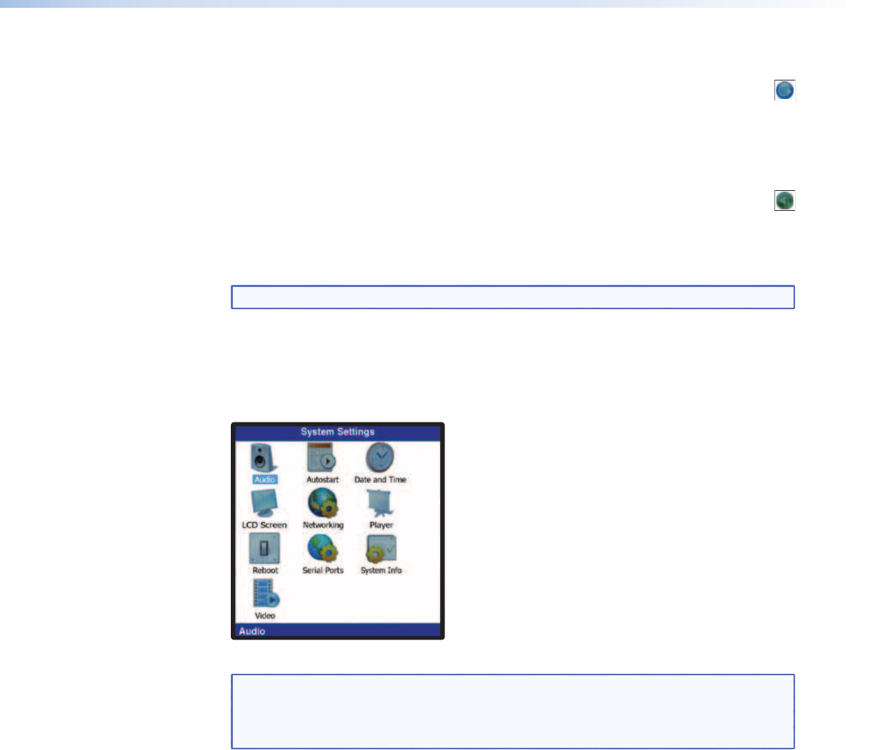 The Settings menu (see figure 14) provides submenus to control the behavior of the player