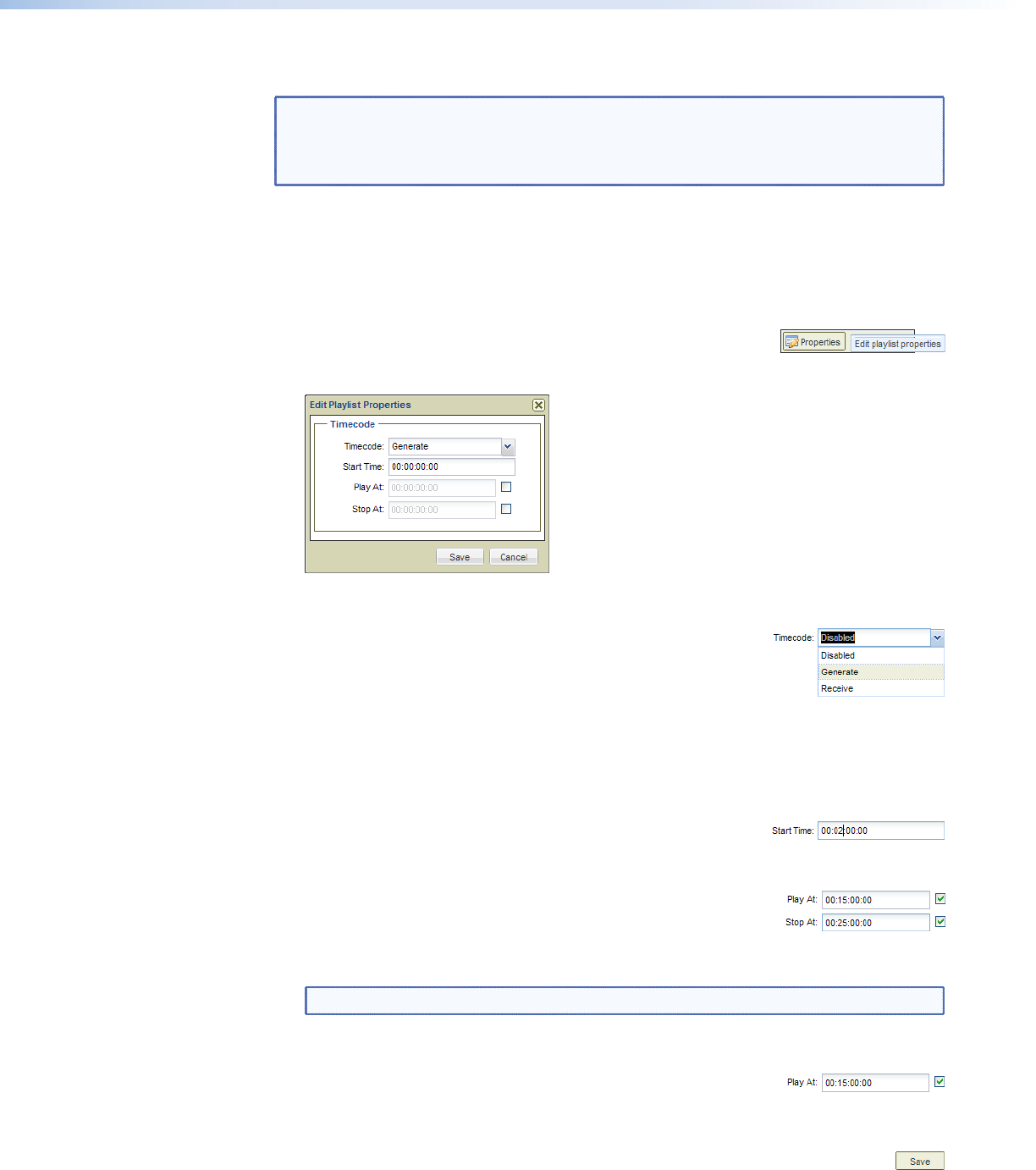 You can edit the timecode mode and other properties of a playlist using controls available in
