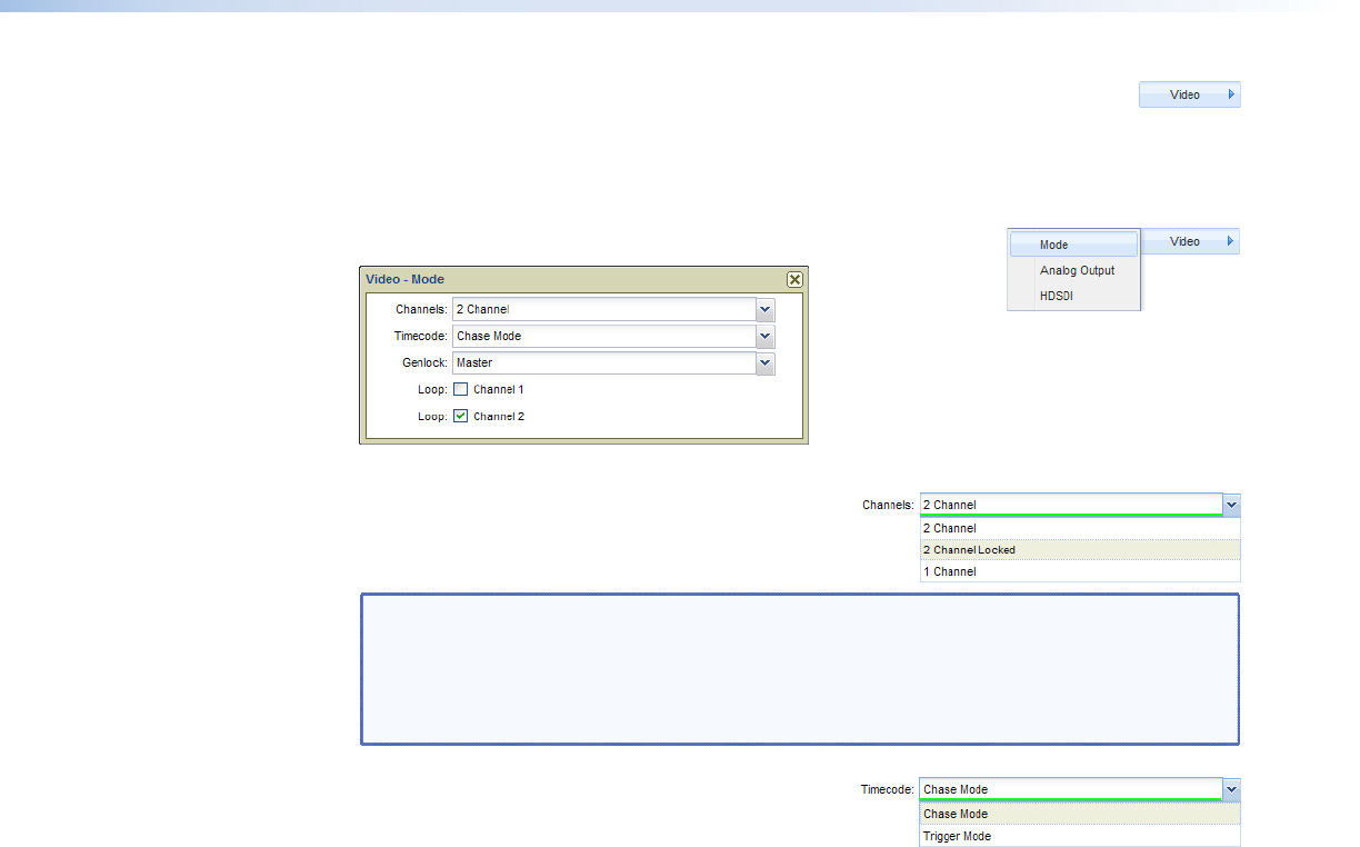 outputs (analog, DVI-I, or HD-SDI), set the video colorspace, and congure video synchronization.