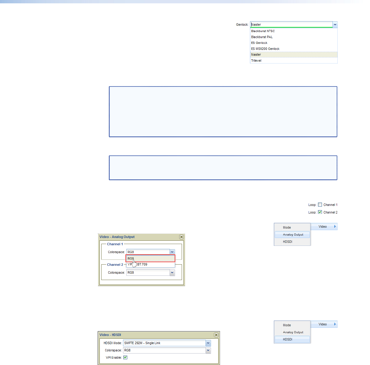 NOTES: • ES Genlock and ES MS9200 Genlock are proprietary sync signals that are