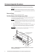 Firmware Upgrade Procedure, cont’d 3. Note the key (angled corner) of the replacement firmware IC and the dot on the underside that indicates pin 1 (figure 3). Orient the IC to match the key and pin 1 (indicated by arrow) on the socket. While you support the front panel from the bottom, carefully press the IC in place. Key Pin 1 mark Pin 1 mark Key Socket IC Figure 3 — Key and pin 1 mark Reinstall the Front Panel and Initialize the Switcher 4 1.