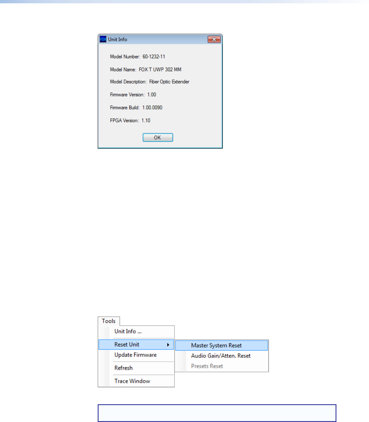 1. From the Tools menu, select Unit Info. This opens a dialog box displaying