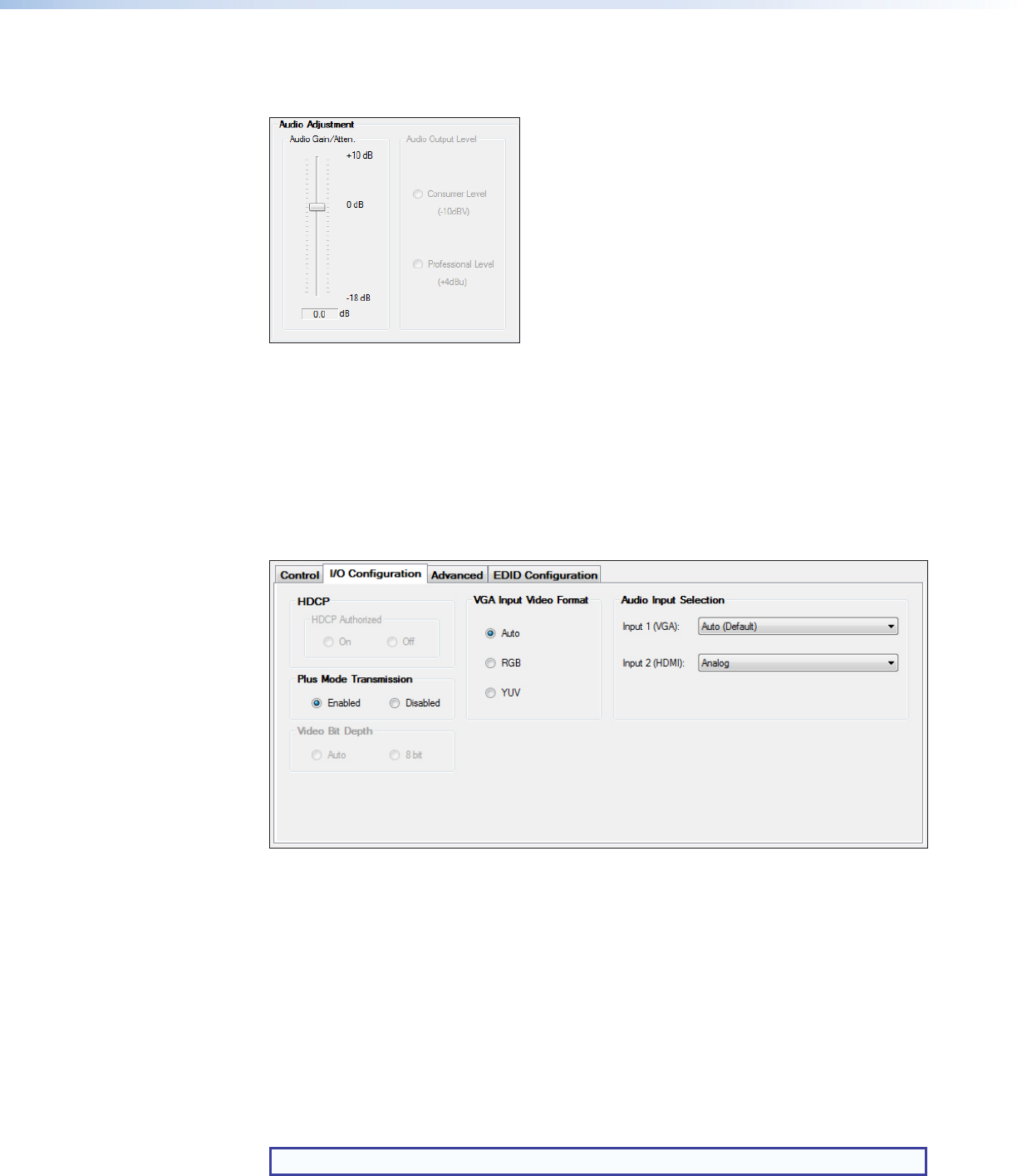 Audio Gain and Attenuation — Adjusts the analog input audio gain or attenuation value.
