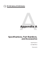 - Appendix A: Specifications, Part Numbers, and Accessories