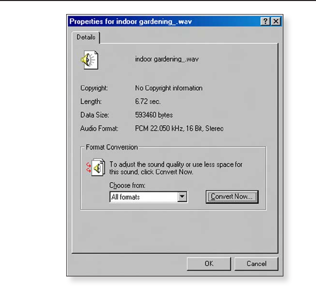 select the audio format of 8.0 kHz, 16 bit, mono, as shown