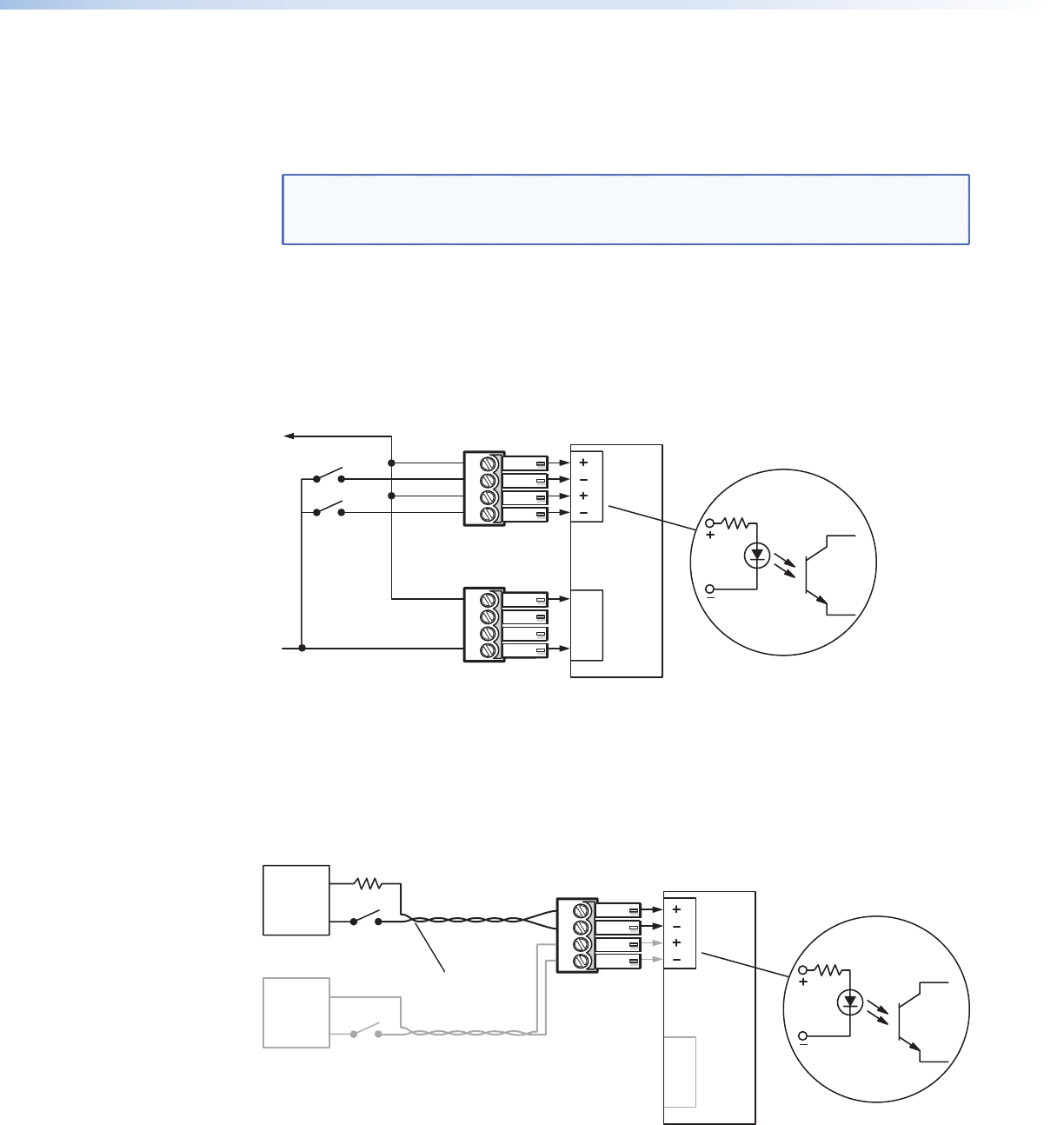 The optically-isolated input circuits provide for various connection scenarios; two common