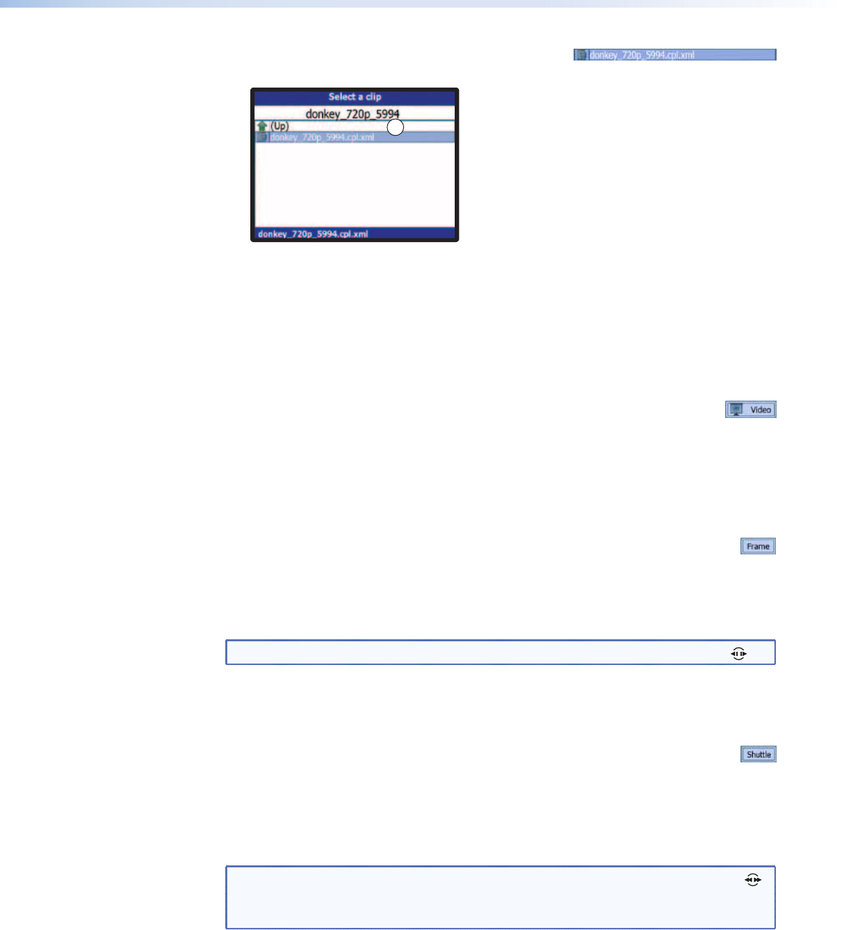 6. Rotate the encoder knob as necessary to highlight the desired clip file.