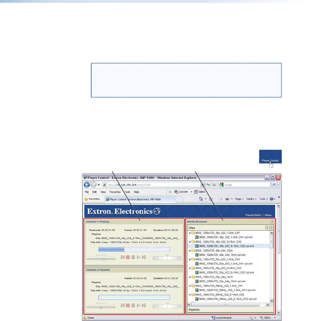 4. Press the keyboard <Enter> key. The player downloads the Player Control page (see
