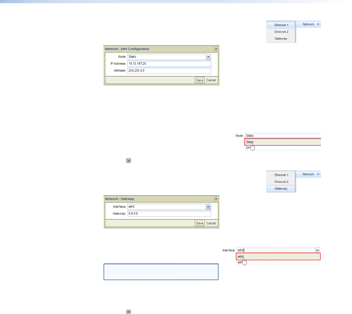 1. Select Network > Ethernet 1 or Network > Ethernet 2 to