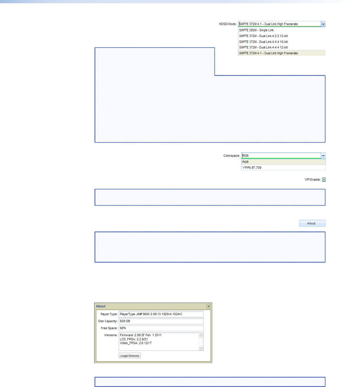 NOTE: The player ships with the dual-link HD-SDI VPI tag on by default. You may chose
