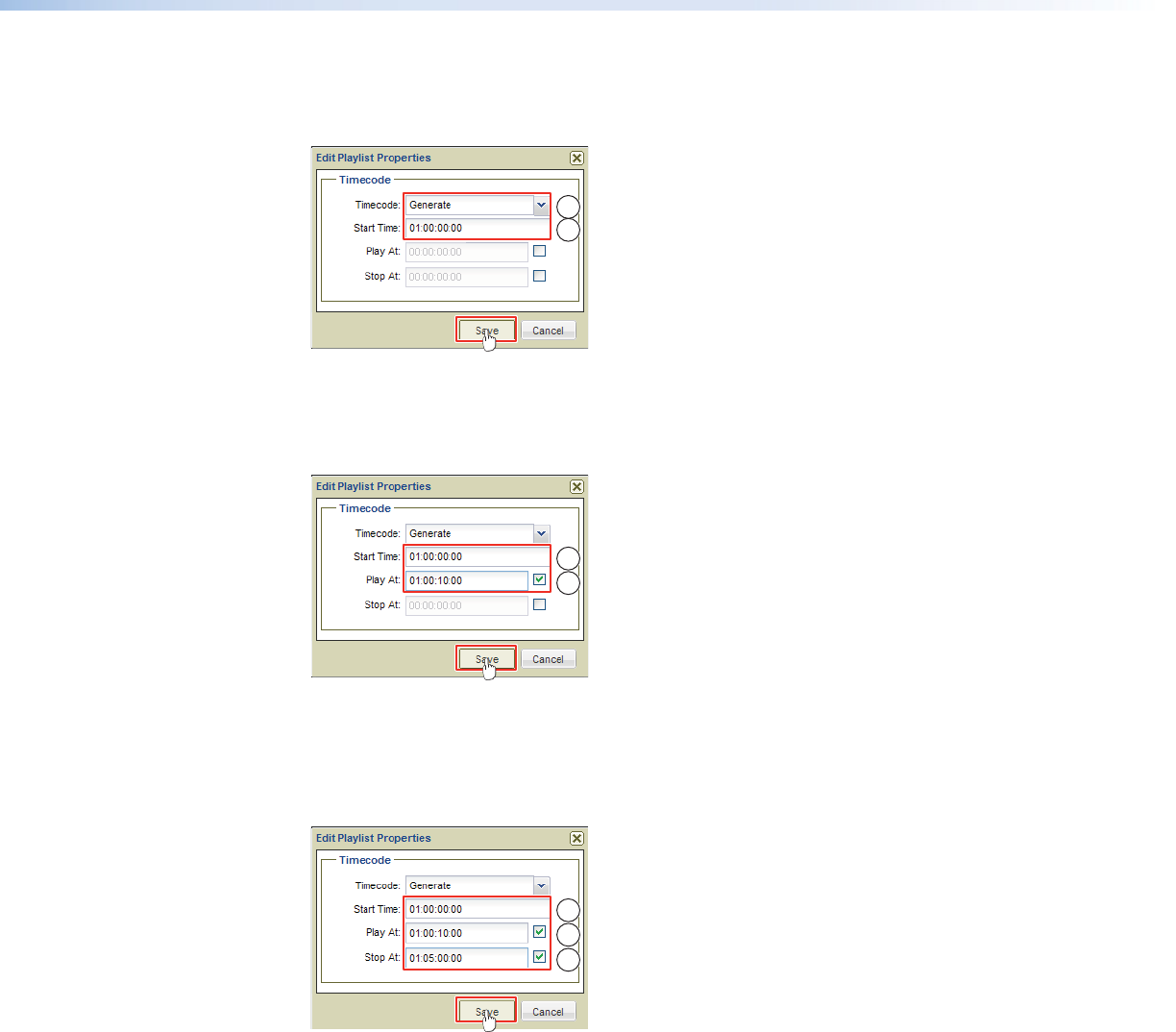 Figure 71 shows using the Edit Playlist Properties dialog box to generate an LTC starting