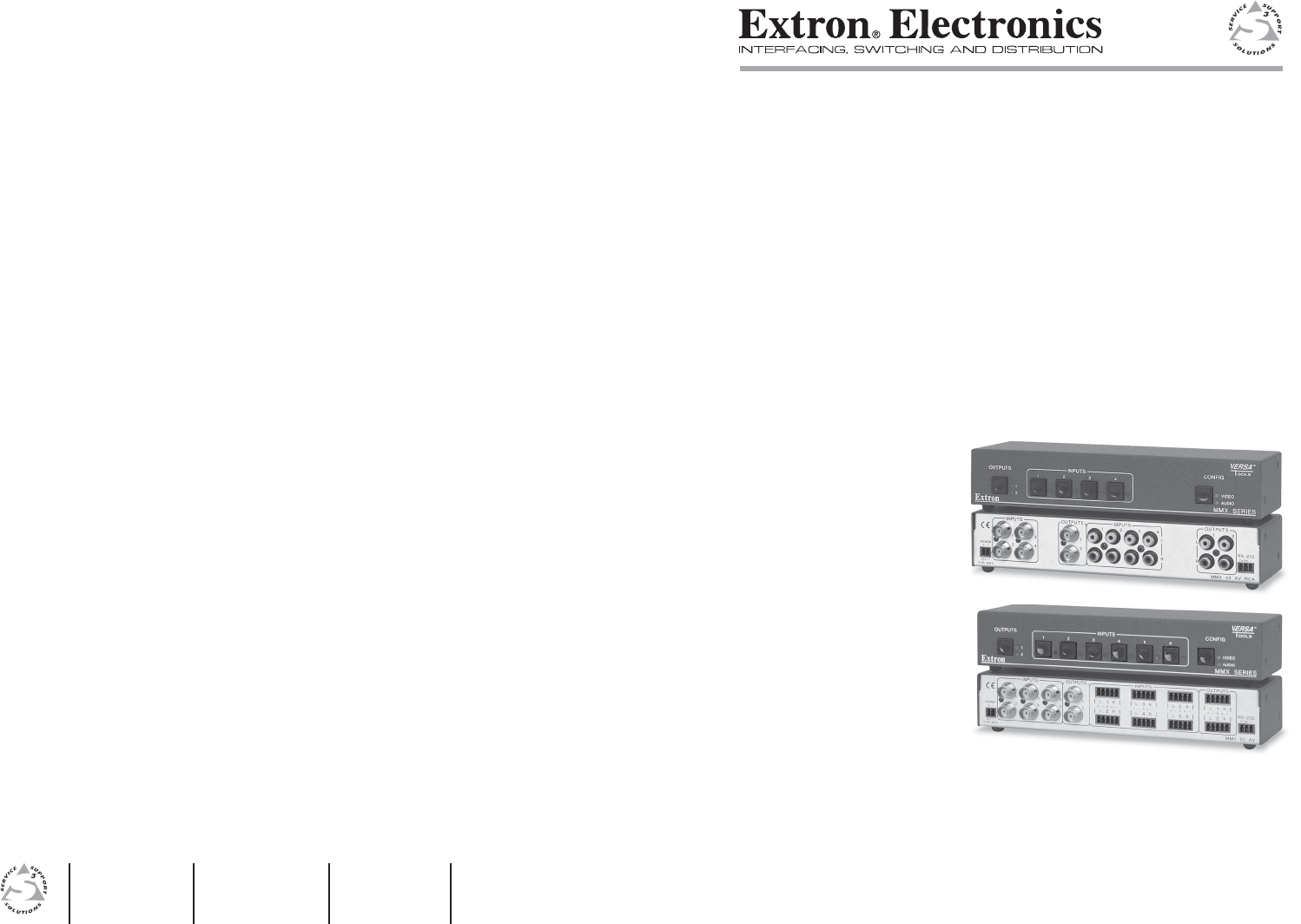 User’s Manual MMX 42/62 Series www.extron.com Extron Electronics, USA Extron Electronics, Europe Extron Electronics, Asia Extron Electronics, Japan 1230 South Lewis Street Anaheim, CA 92805 USA 714.491.1500 Fax 714.491.1517 Beeldschermweg 6C 3821 AH Amersfoort The Netherlands +31.33.453.4040 Fax +31.33.453.4050 135 Joo Seng Road, #04-01 PM Industrial Building Singapore 368363 +65.6383.4400 Fax +65.6383.4664 Daisan DMJ Building 6F 3-9-1 Kudan Minami Chiyoda-ku, Tokyo 102-0074 Japan +81.3.3511.