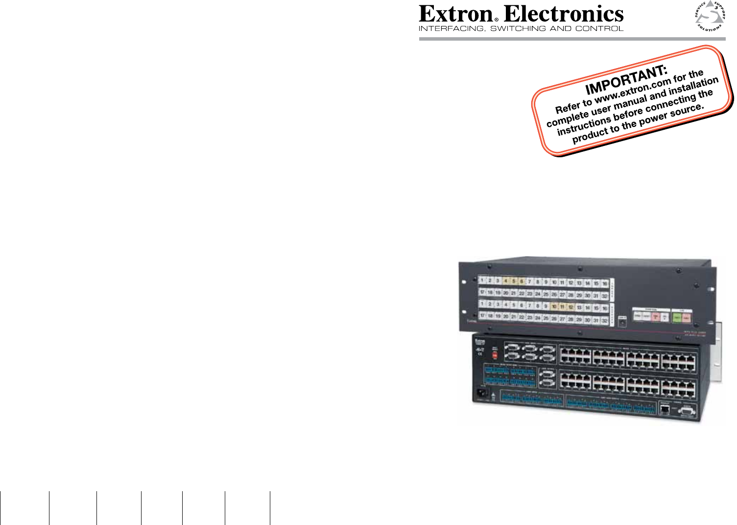 Introduction About this Manual The switchers are available in the following matrix sizes: This setup guide allows you to easily and quickly set up and configure your Extron MTPX Plus Twisted Pair (TP) Matrix Switcher. Step by step instructions show you how to connect the hardware and then use the physical controls, Simple Instruction Set (SIS™) commands, the Matrix Switchers Control Program, and built-in HTML pages to optimize the video and audio output for the best quality.