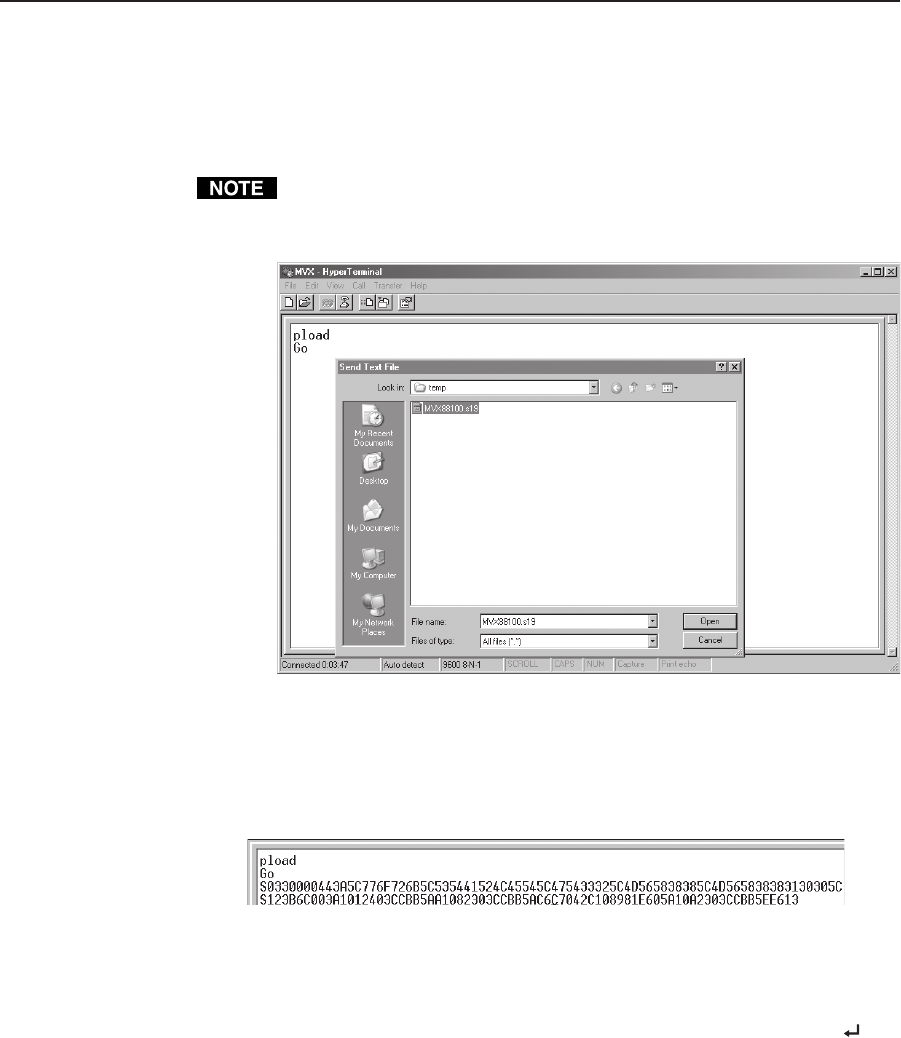 7. Click Open. The firmware upload begins. If you have HyperTerminal’s echo
