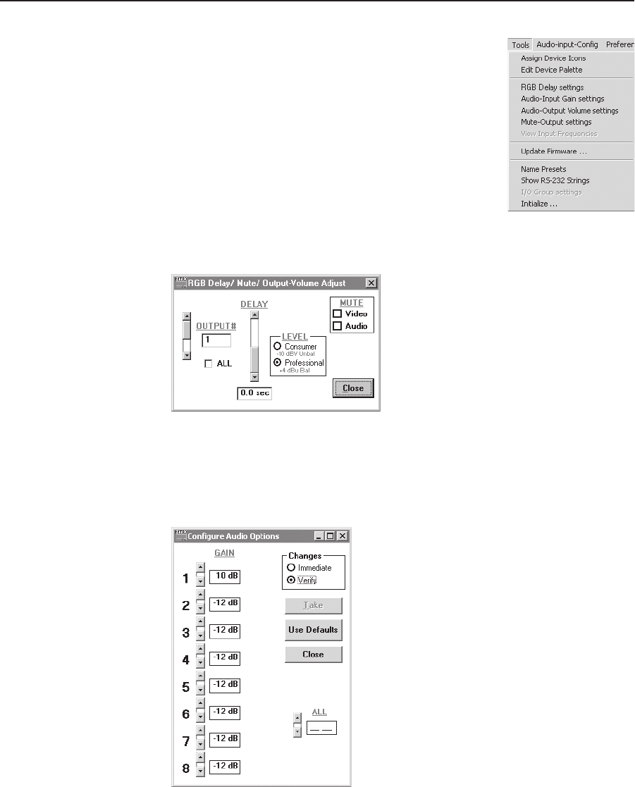Figure 4-11 — RGB Delay/Mute/Output-Volume Adjust window