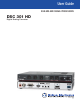 Key Features Inputs • Video — The DSC 301 HD has the following connectors: one HDMI connector, one 15-pin HD connector for RGBHV or HD/SD component video, and one BNC connector for composite video. • Auto-Image setup — When activated, the unit automatically detects the resolution of the incoming video signal and sets the total pixels, phase, active pixels, and active lines, as well as the horizontal and vertical starting points.