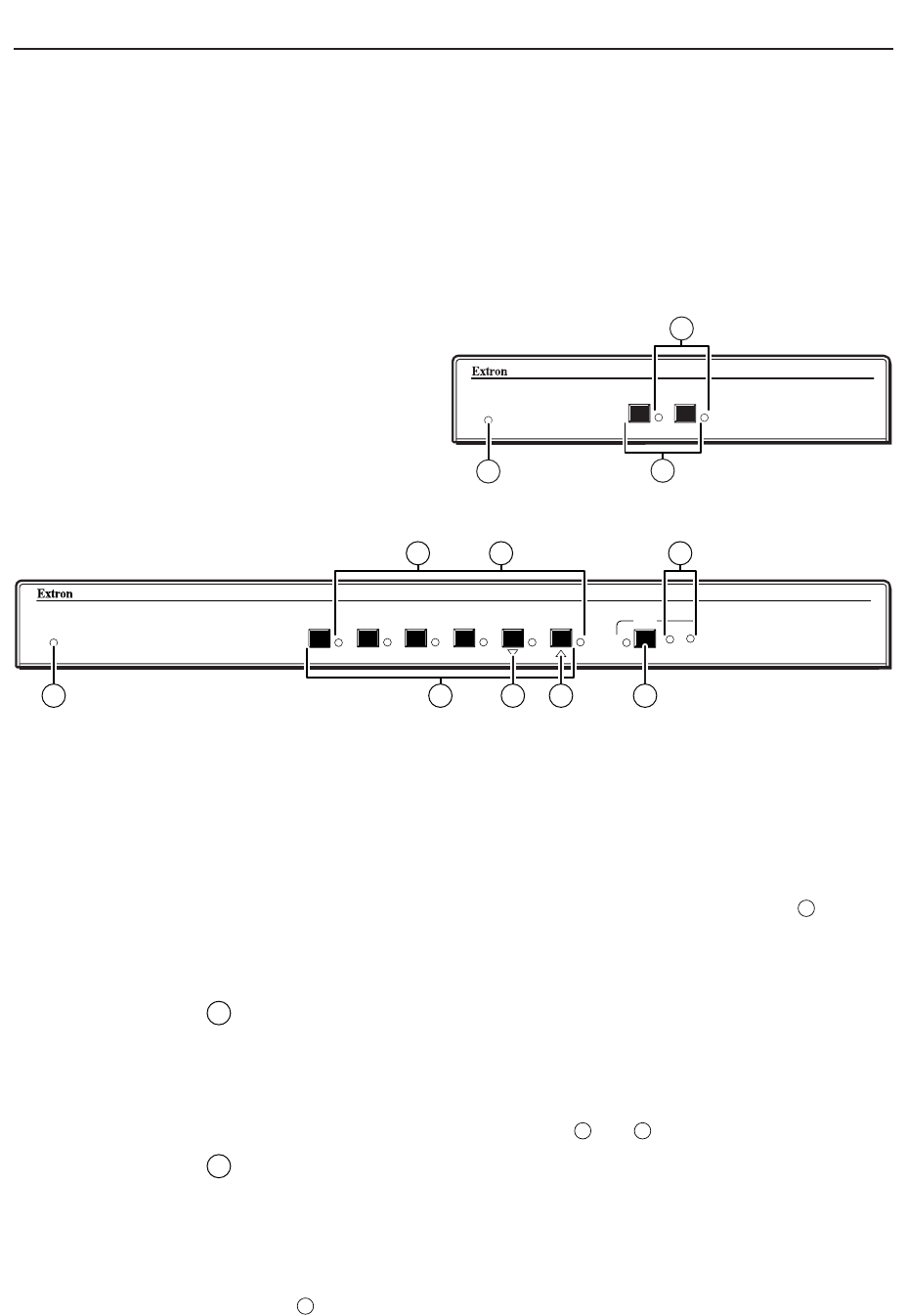 Figure 3-1 shows the front panel of an SW2 RGBHV switcher. Figure 3-2 shows the