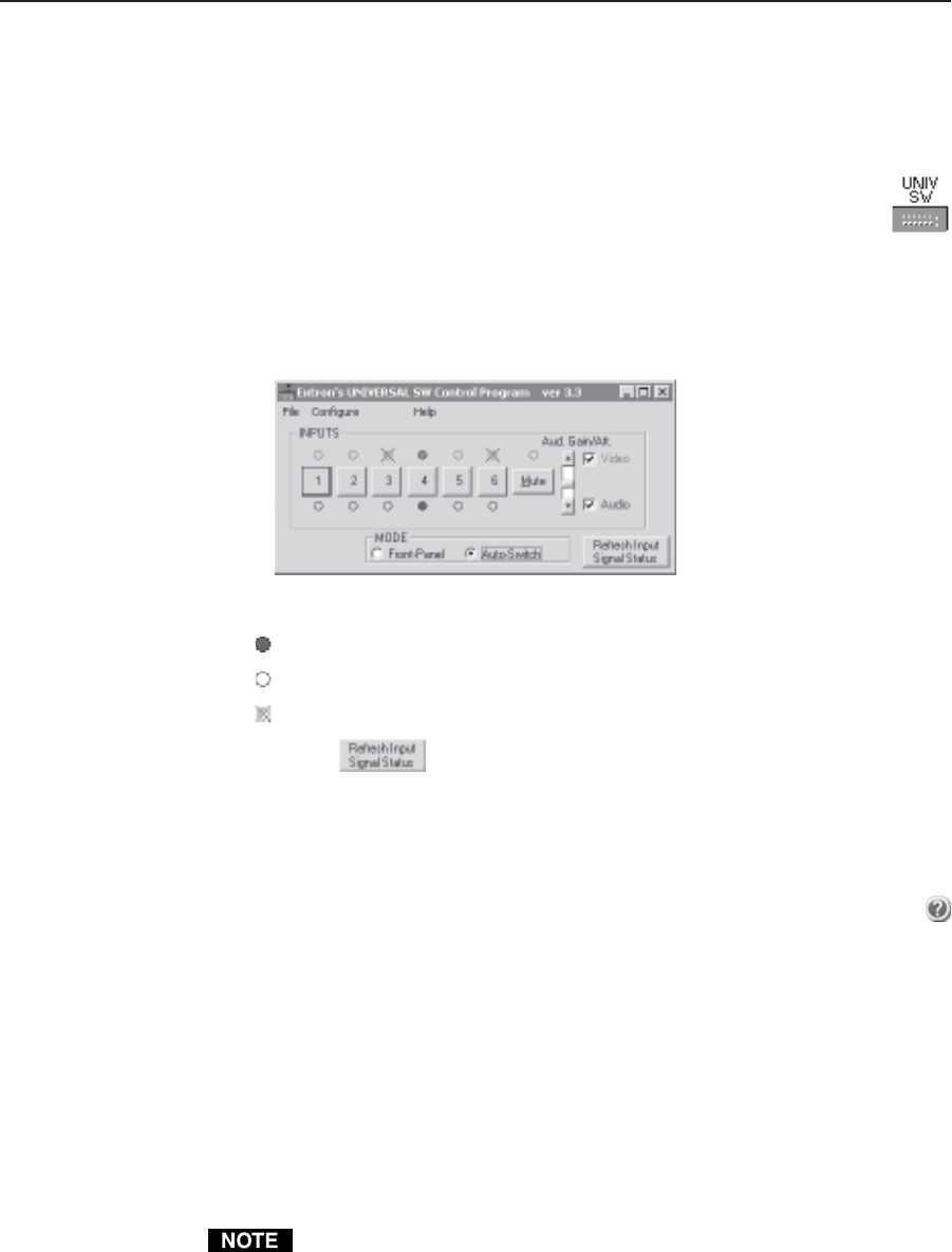 4. The Extron Universal Switcher Control Program window (Figure 4-4) displays