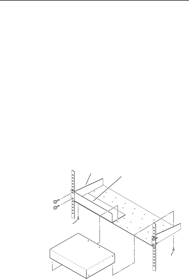 2. Mount the switcher on the rack shelf, using two 4-40 x