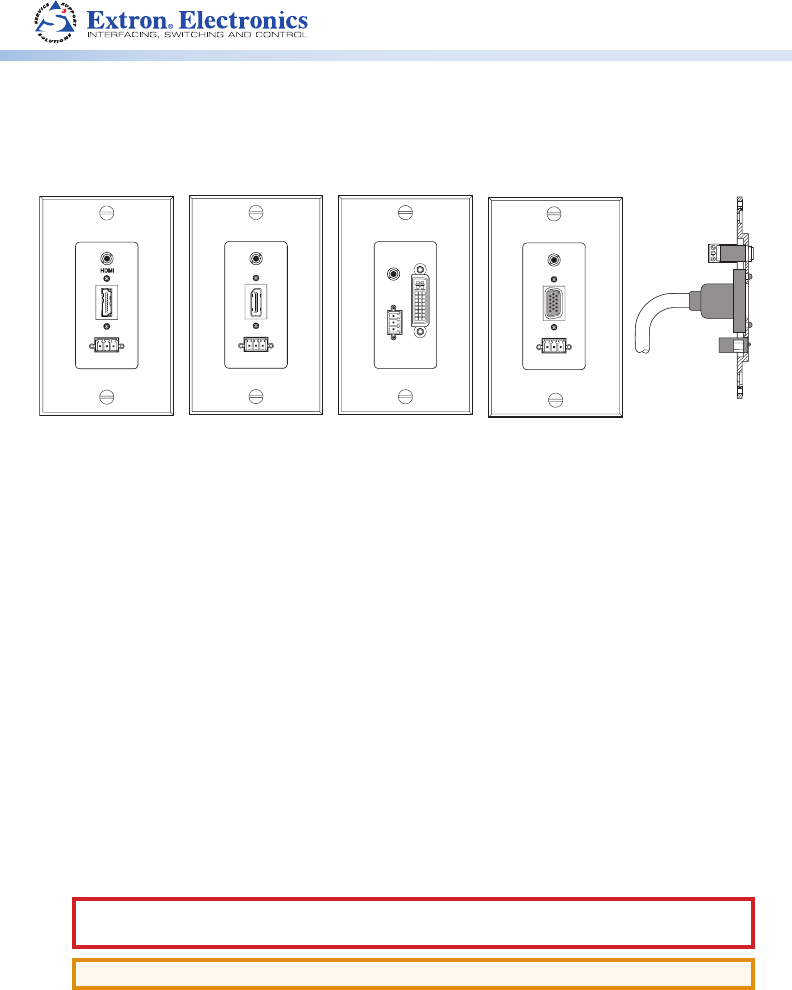 gang pass-through wallplates with HDMI, DisplayPort, DVI or VGA front connectors and