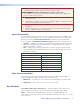 Wiring for RS-232 Over Fiber and Alarm Communication The RS-232 Over Fiber port is for transmission of serial signals, such as projector control signals. The alarm port is an internal relay to connect or disconnect a custom alarm circuit. Wire the connector as shown in figure 3 below. RS-232 OVER FIBER ALARM Tx Rx G Tx Rx G 2 1 RS-232 Device Figure 3. 1 2 Alarm Device Wiring the RS-232 Over Fiber and Alarm Connector ATTENTION: • The length of exposed wires in the stripping process is critical.