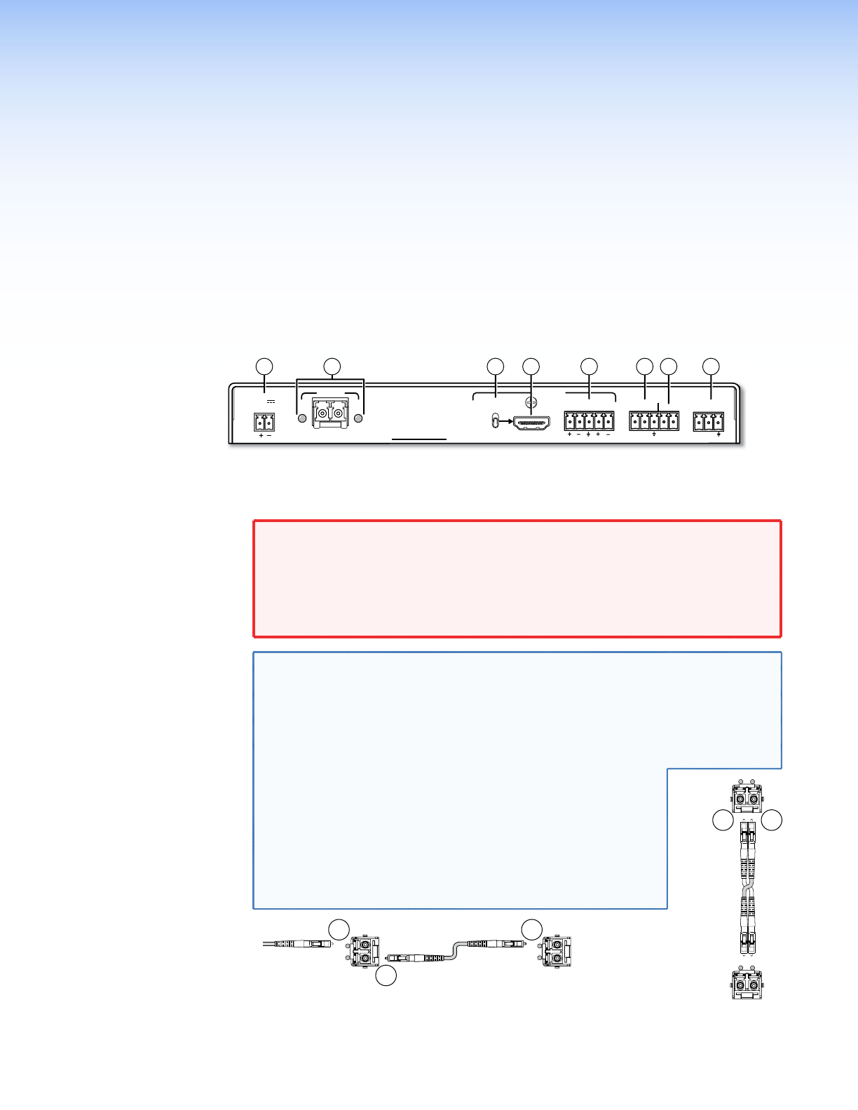 • Two-way (transmitter to receiver and return) — Connect fiber
