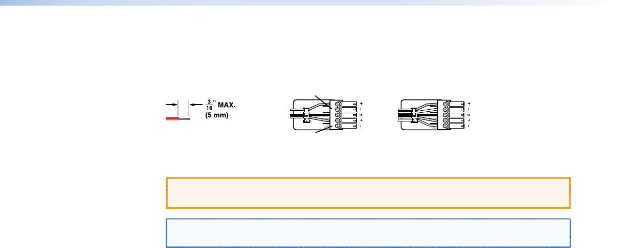 NOTE: The length of exposed wires is critical (see the RS-232 connector NOTE on